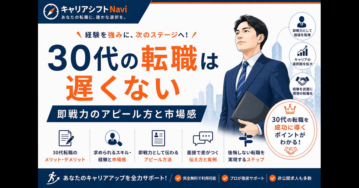 「遅い」という漠然とした不安ではなく、自分のキャリア軸を明確にし、即戦力としての価値を正しく伝えることで、30代だからこそ可能な転職が実現できます。