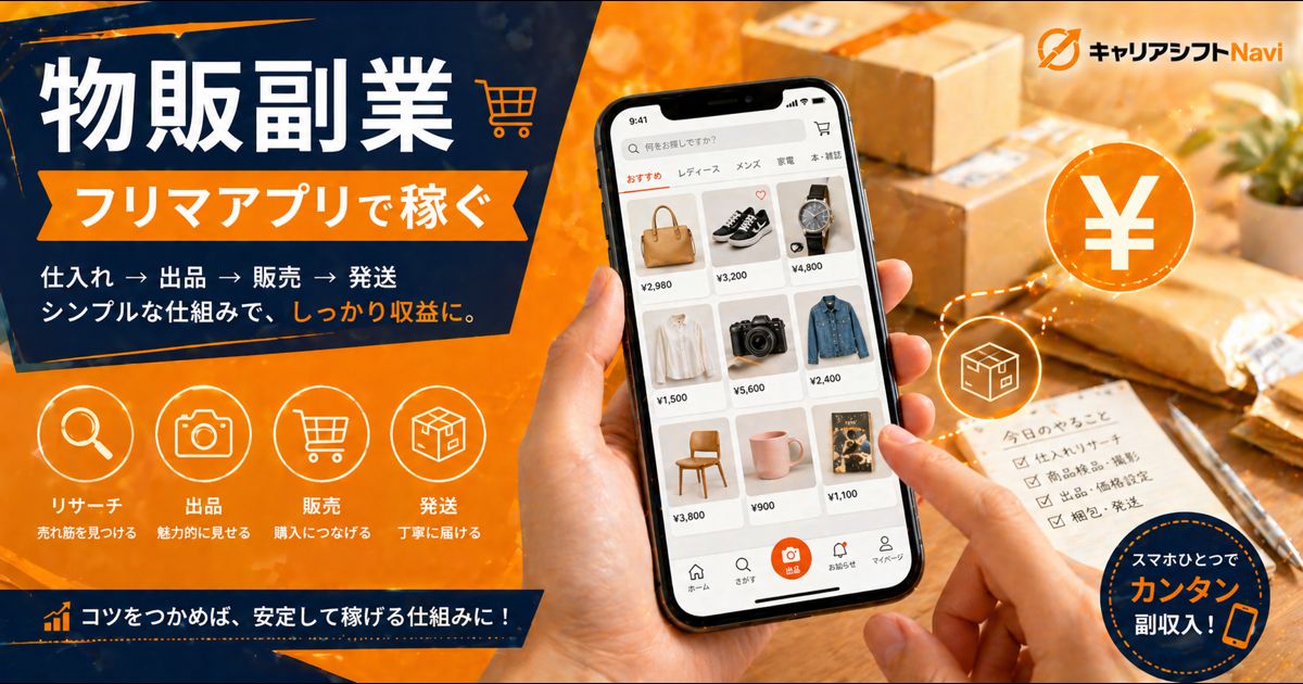 「副業で稼ぎたい」と考えたとき、真っ先に浮かぶのが物販(せどり・不要品販売)です。フリマアプリの普及により、スマートフォン1台で始められるようになりました。
