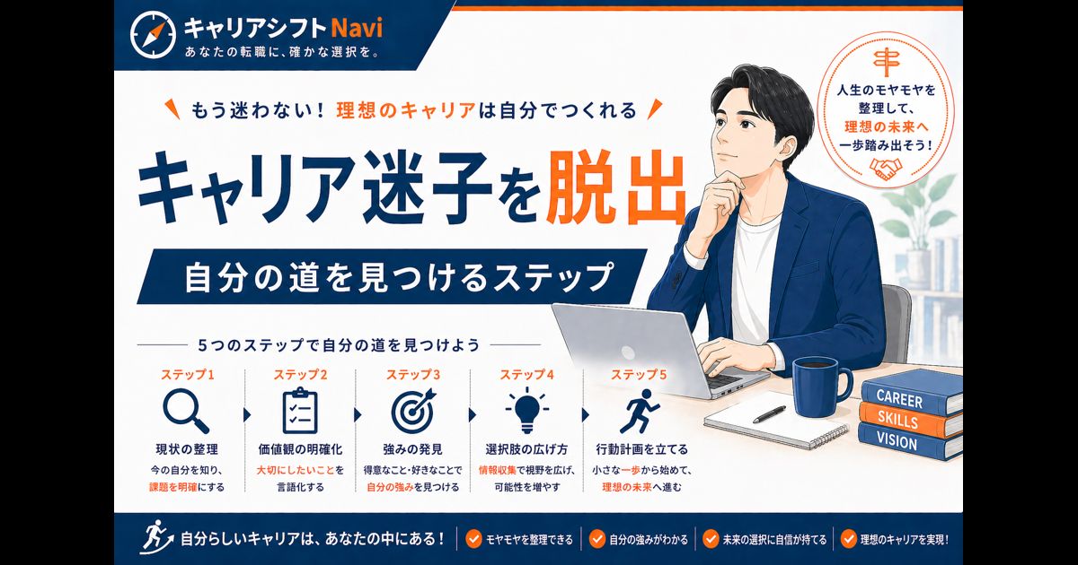 キャリア迷子から脱出するための5つのステップ、そしてよくあるパターンの対策を解説しました。