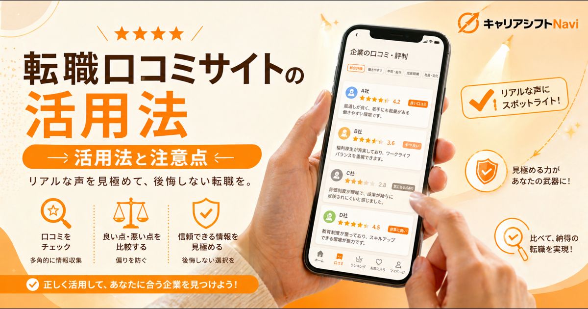 本記事では、転職口コミサイトの上手な活用法、信頼度の見極め方、そして落とし穴を避けるための注意点を、具体例を交えて詳しく解説します。この記事を読めば、口コミサイトを「判断の参考情報」として正しく活用し、ブラック企業回避と職場選びの精度を大幅に高めることができます。